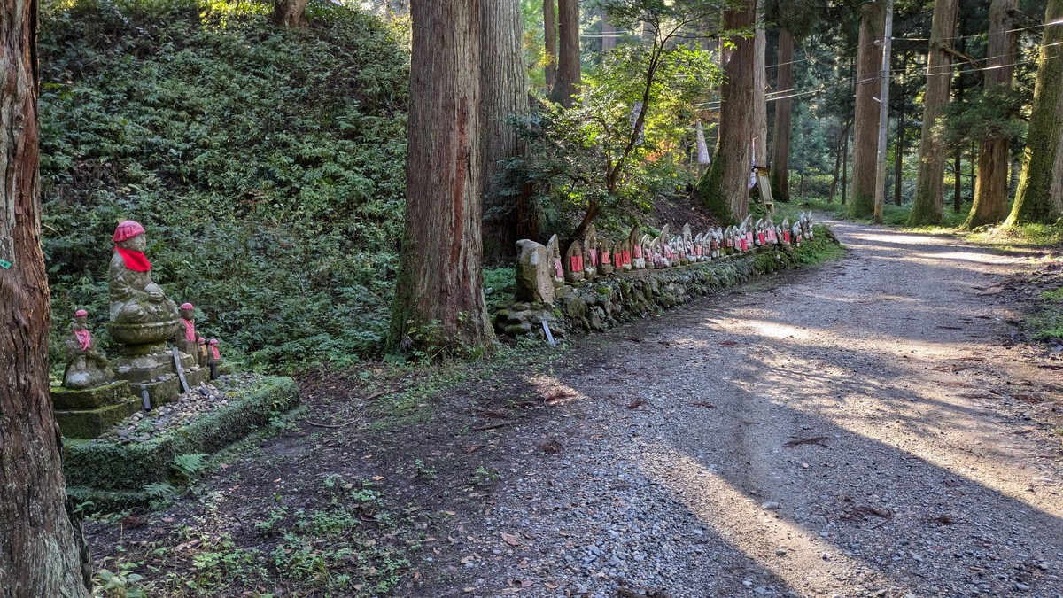 なだらかな道には杉並木と共に沢山のお地蔵さんも並んでいます。