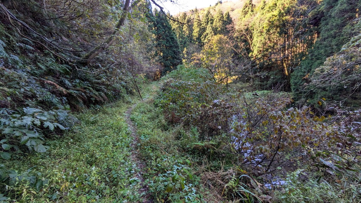 この日は「尾根線」ピストン。沢沿いの平坦な道を歩いて行きます。