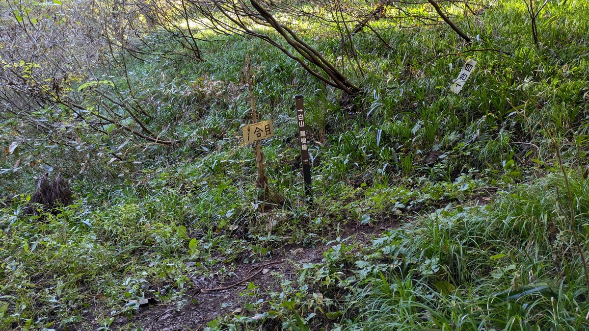 1合目の標識。ここからようやく上り坂が始まります。