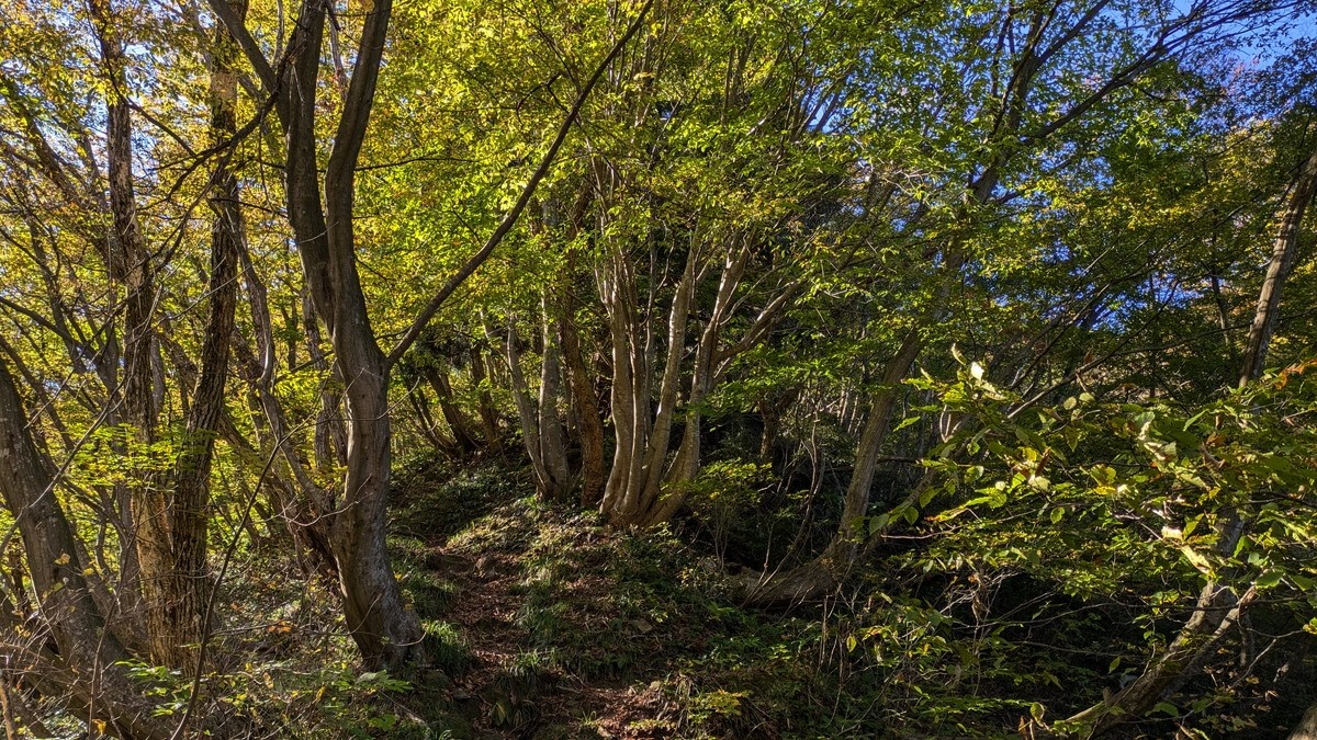 こういうなだらかな所の落ち葉は好きなんですけどね~。急坂の下りでは凶器と化します(笑)