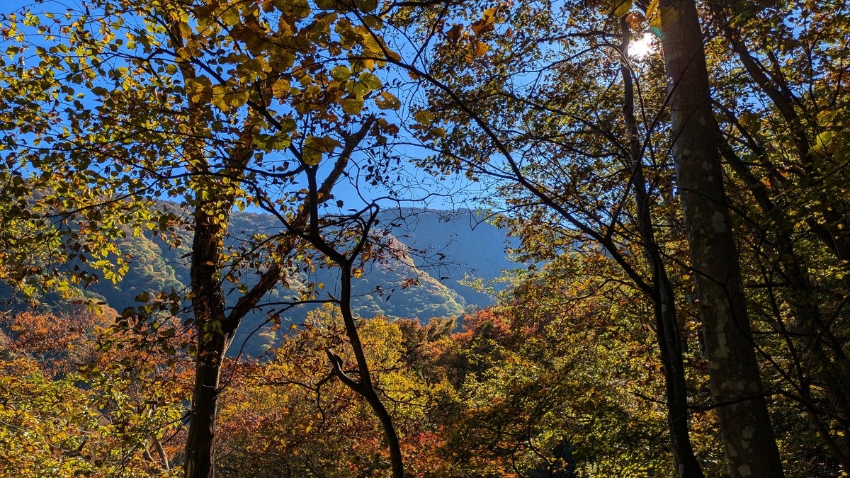 それでも日が差してくると、色が変わりつつある樹木のきれいな景色が楽しめました。