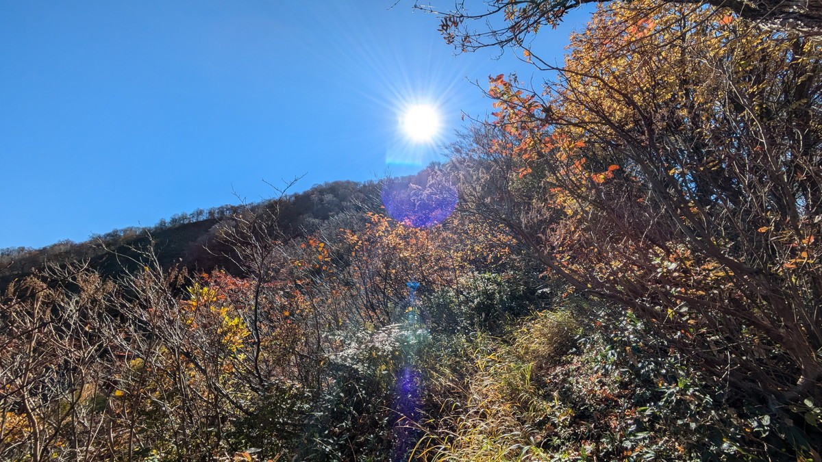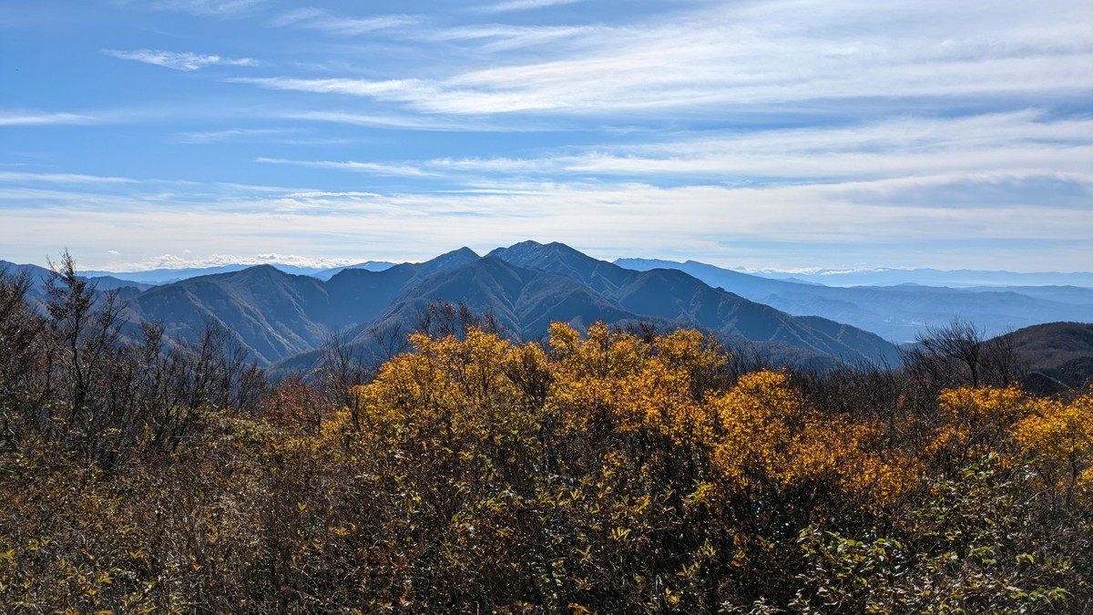 刈払いされていれば山頂からの眺望もとても良いのですが、これだけ背の高いススキが沢山生えていると厳しいですね。積雪期は植物が雪で覆われるので、とても眺望が良いです。