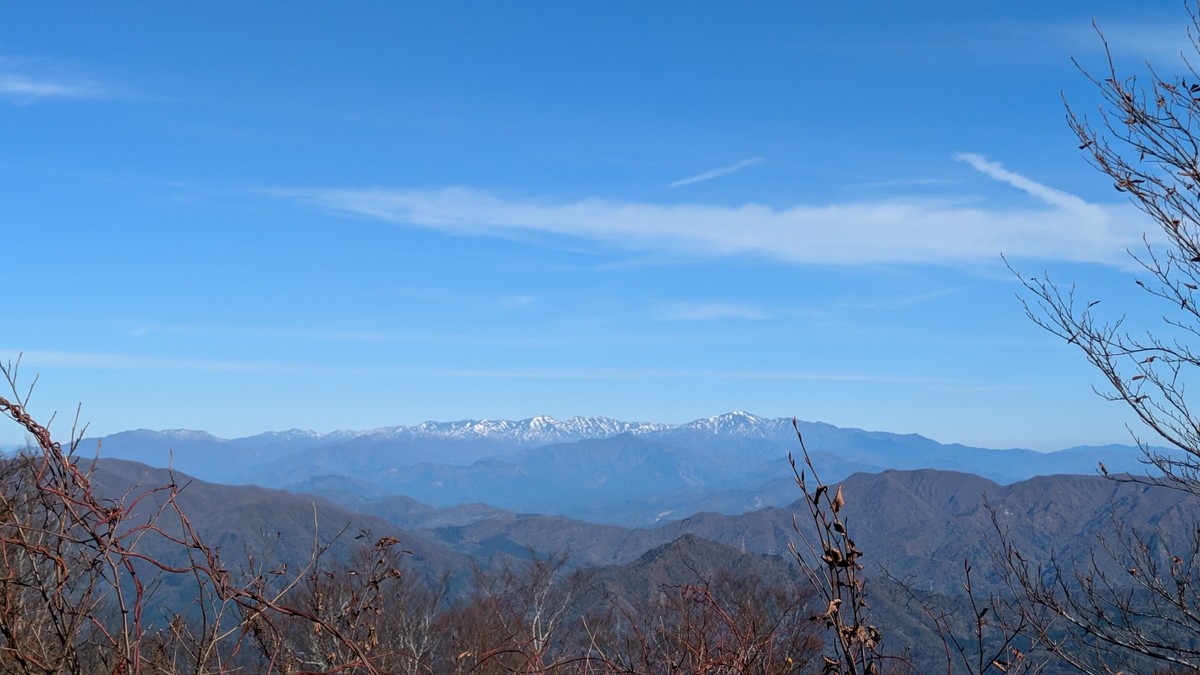 徐々に見晴らしの良いポイントも増えてきます。北の方に目を向けると奥に冠雪した飯豊連峰が見えました。