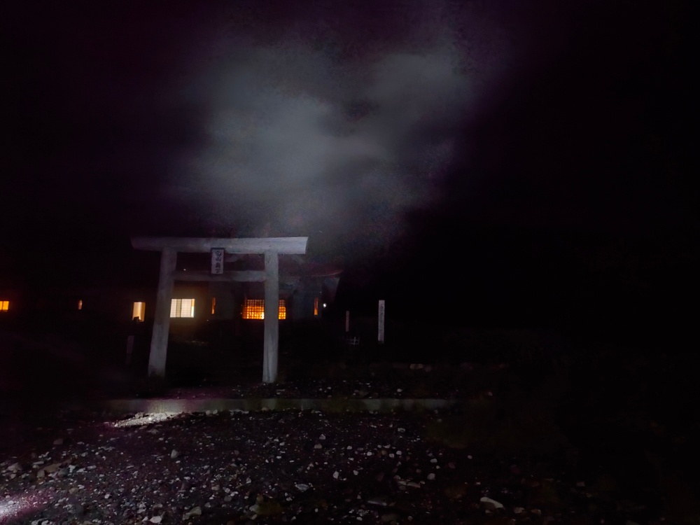 ご来光の時間が近づき、神主さん達もスタンバイ。神主さんのお話を聞きながら待ちます。