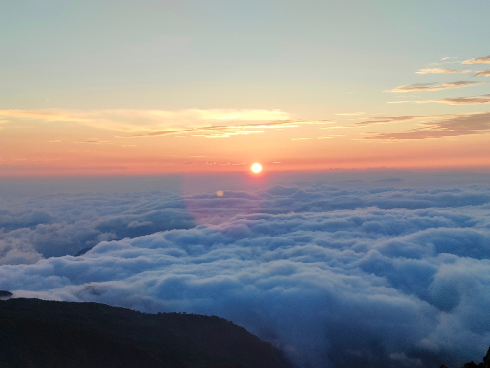山頂に着いた頃には少し明るくなっていました。遠くの景色は見えませんでしたが、雲海が凄かったです。