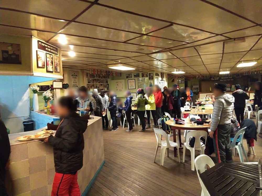翌日1時30分頃に起床。食堂で軽食を食べます。ガイドさんに「戻ってくるまで食事を取れなくなるので、しっかり食べておいてください」と言われました。美味しくてちょっと食べ過ぎてしまい、トイレが心配になりました(笑)