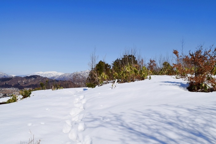 魚沼市堀之内にある「御嶽山(御岳山)」は、山頂標高が306mと低いものの、見晴らしの良い尾根歩きが魅力の素敵な里山です。天気が良ければ「越後三山(八海山、中ノ岳、駒ヶ岳)」などの周辺の山々や、魚沼市の街並みを眺めながら尾根歩きが楽しめます。