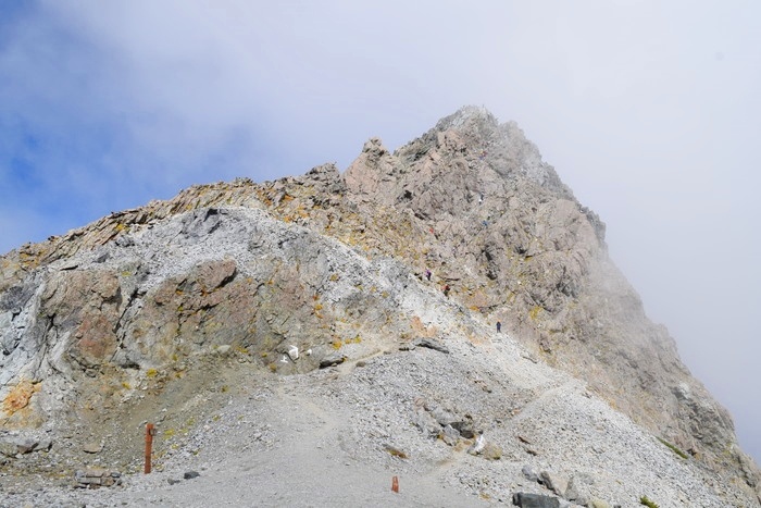 槍の穂先のルートは登りと下りで分かれているので、ペンキの矢印を確認しながら間違えないようにしましょう。基本的に左側通行です。