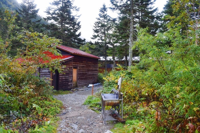 「槍平小屋」に戻ってきました。ここの水場は本当にありがたい。水を補給しておきます。