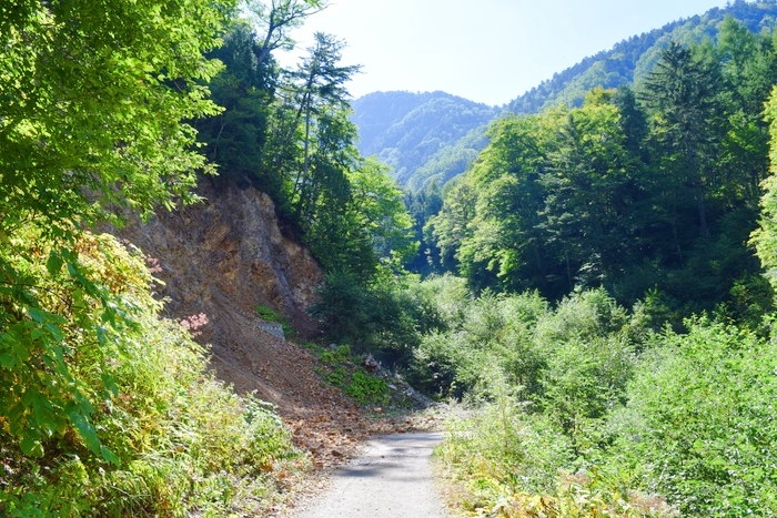 「白出沢」より下はなだらかな林道。長いのがちょっと面倒ですが、岩の上ばかり歩いてきたので凄く気が楽です。
